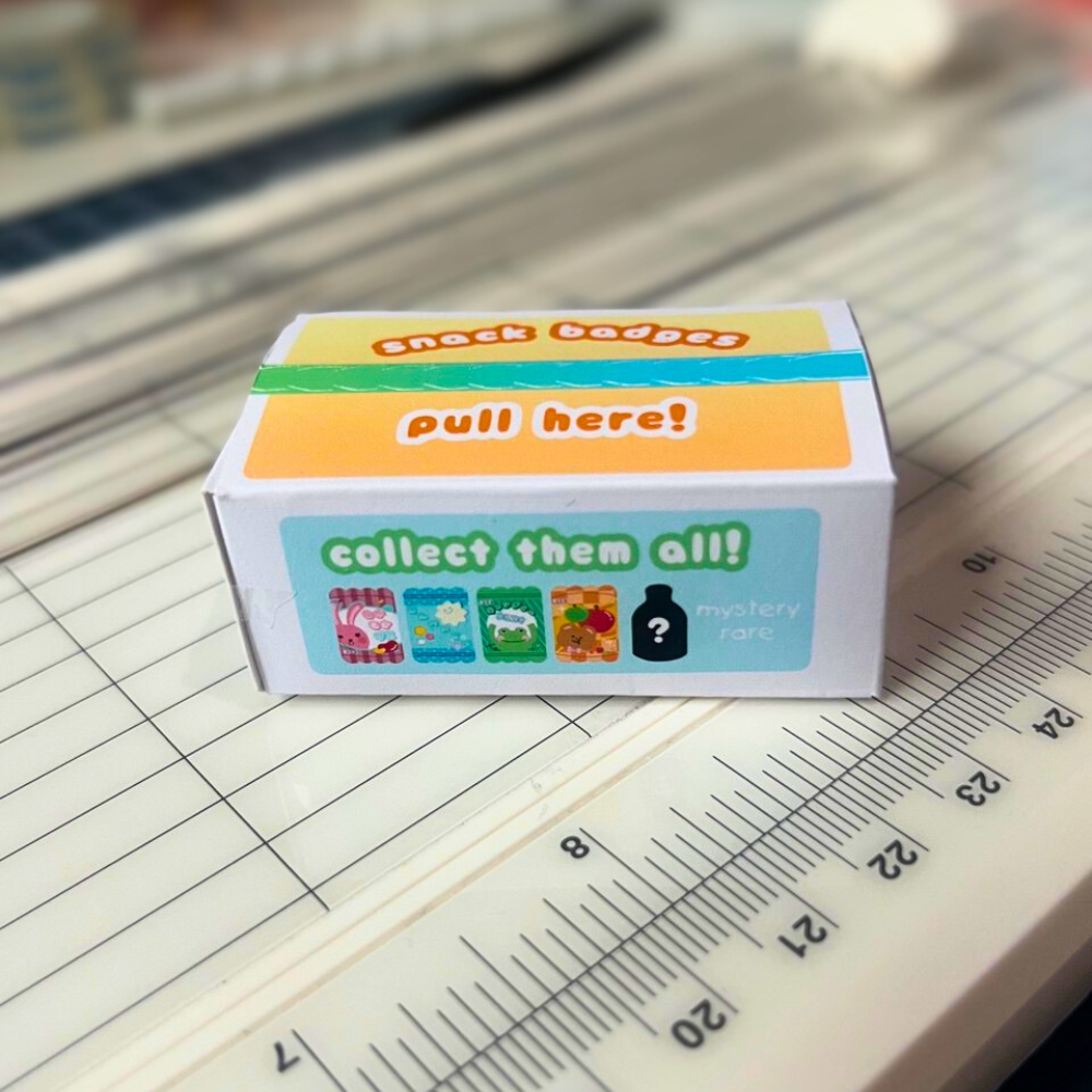 Pins of cute snack boxes made with frosted (slightly see-through) acrylic. The backing clutch is star shaped, it is visible in the video.
